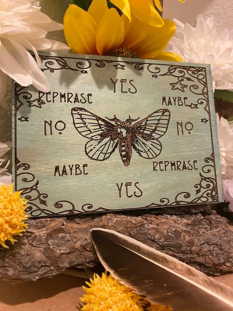 Just as pendulums, a pendulum board can be crafted out of a variety of materials. You can draw your own at home or print one you find on the internet. The options are endless, some are made of metal or plastic, but my all-time favorites are our wood pendulum boards! Being made from wood, it helps me remember to stay grounded and rooted during my session with my board and pendulum to get a clear answer. Depending on what types of questions you plan on asking your board as well as your personal style, will determine which type of material is best for you!